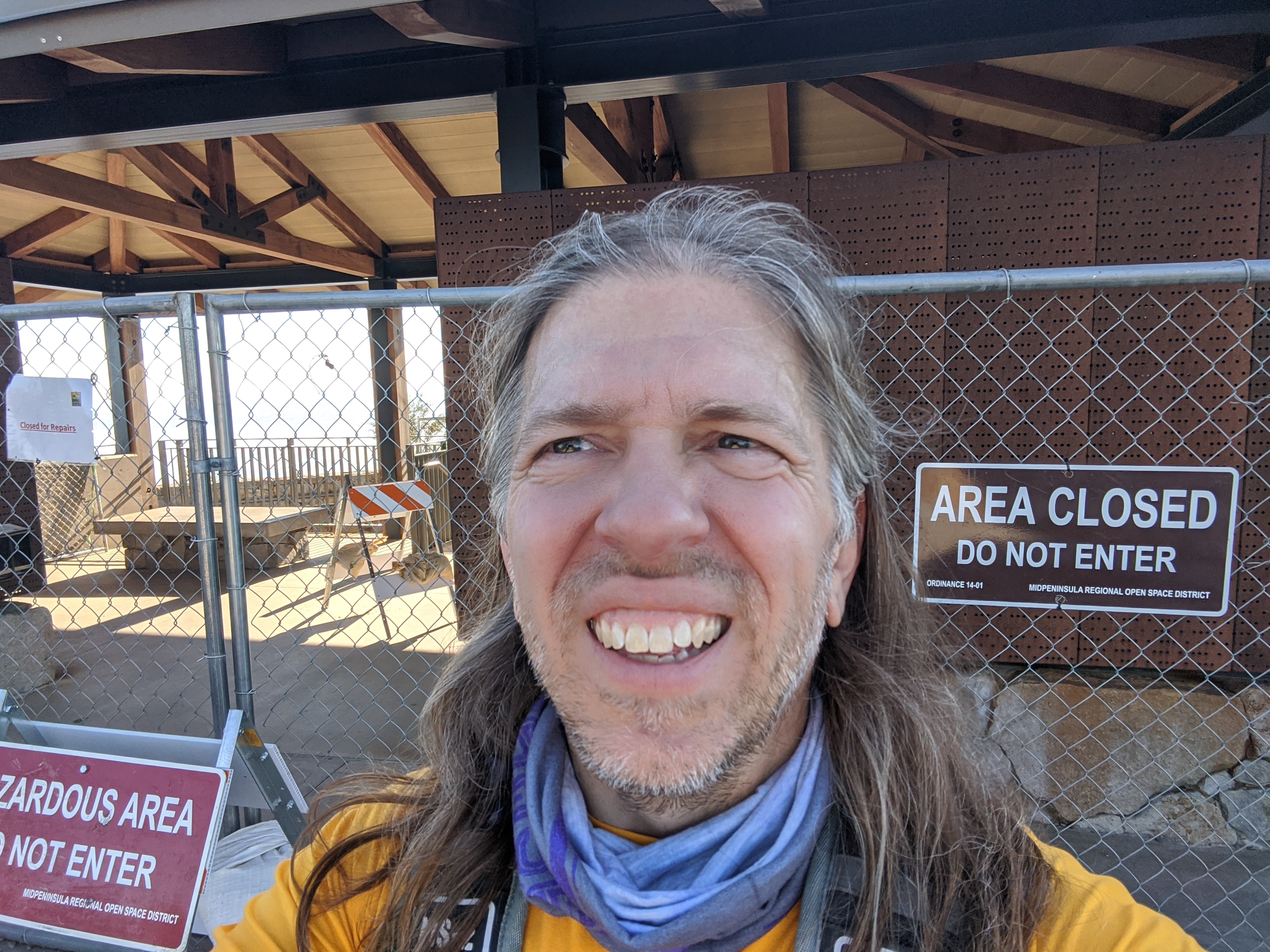 The Alviso Marina County Park is closed at night, so I entered the trail system on Hope Street. From there it was a short walk up to the trailhead gate at the park boundary. I briefly stopped and posed there for the obligatory starting line selfie photo.