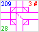Monsters are displayed in red in the upper right, with the number of monsters and then a letter representing the type: